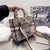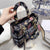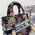 - The Lady D-Lite bag combines classic elegance with House modernity. Fully embroidered with the black multicolor Botanique motif. it features a romantic floral pattern inspired by the Granville gardens so dear to Mr. Dior. The front features a brand's signature while the brand's charms in pale gold-finish metal embellish and illuminate the silhouette. Equipped with a wide. reversible and removable embroidered shoulder strap. the medium Lady D-Lite bag can be carried by hand or worn crossbody.