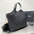 - MAXI SHOPPING BAG WITH TOGGLE CLOSURE. FEATURING A REMOVABLE ZIPPED POUCH. DECORATED WITH CARRÉ-QUILTED OVERSTITCHING AND THE NEW SCULPTED.