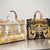 - Medium Sunshine shopper made of leather with a print. Born of the creative collaboration between the two fashion houses. the graphics combine the iconic Brand logo with the Versace Baroque print in pink. gold and white. Gold laminated leather and stiff tortoiseshell-effect plexiglass handles.