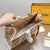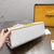 - Features a spacious internal compartment lined in fabric. white leather edging and gold-finish metalware.