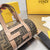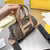 - Mini bowling bag made of fabric with jacquard F motif and beige leather appliqués that create the F motif.