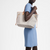 - The Neverfull MM bag combines classic design with signature details. Crafted from fresh Damier Azur canvas and lined in colorful fabric with calfskin trim. it's roomy without being bulky. Tighten the sides for a trendy look. and stretch for a casual look. It has a slim handle so it can be carried over the shoulder or over the elbow. The detachable bag can be used as a clutch or pocket.