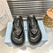 - This rubber thong sandal is created with a modern silhouette and combines simple and stylish details. The iconic enameled triangle metal logo makes this shoe more stylish. and the embossed rubber sole adds a sporty touch.