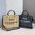 - From the city to a sunny escape. this version of our Large Tote is crafted in woven texture with leather trims. A chunky top zip closure. the namesake embroidered branding. multiple inside pockets and plenty of space make this tote ready for a full day. overnighter or weekend escape. Carry yours by the top handles or wear over your shoulder for an easy commute.